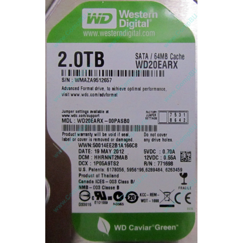 Жёсткий диск 3.5" 2000Gb (2Tb) Western Digital WD20EARX Intellipower Green (2000 гигабайт (2 терабайт), пониженная скорость вращения - 5400 rpm) SATA. Основное предназначение - системы видеонаблюдения / медиацентры. В обычных компьютерах также будет работать.